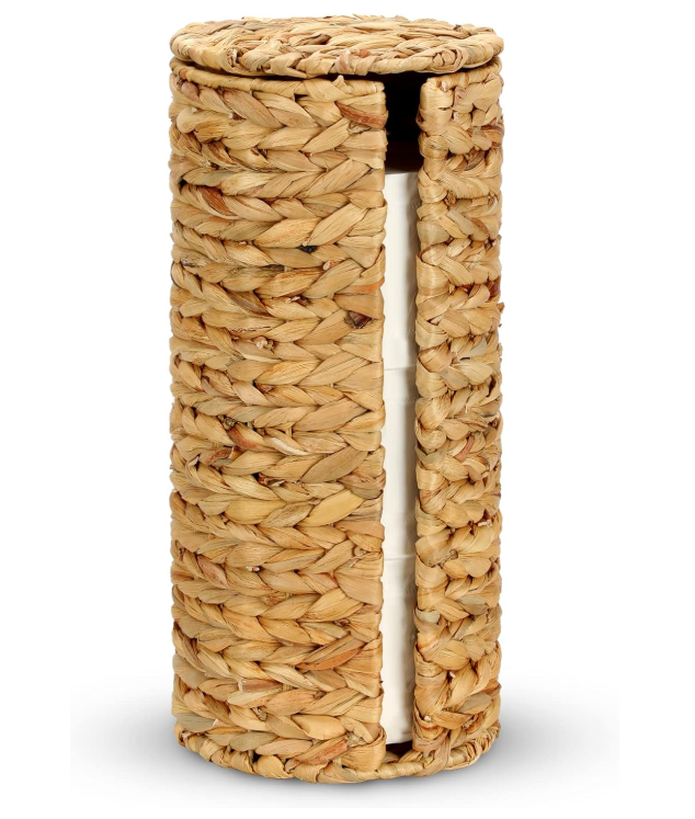 Store extra toilet paper rolls in style with this handwoven water hyacinth basket. It’s both practical and decorative, adding a natural touch to your bathroom.